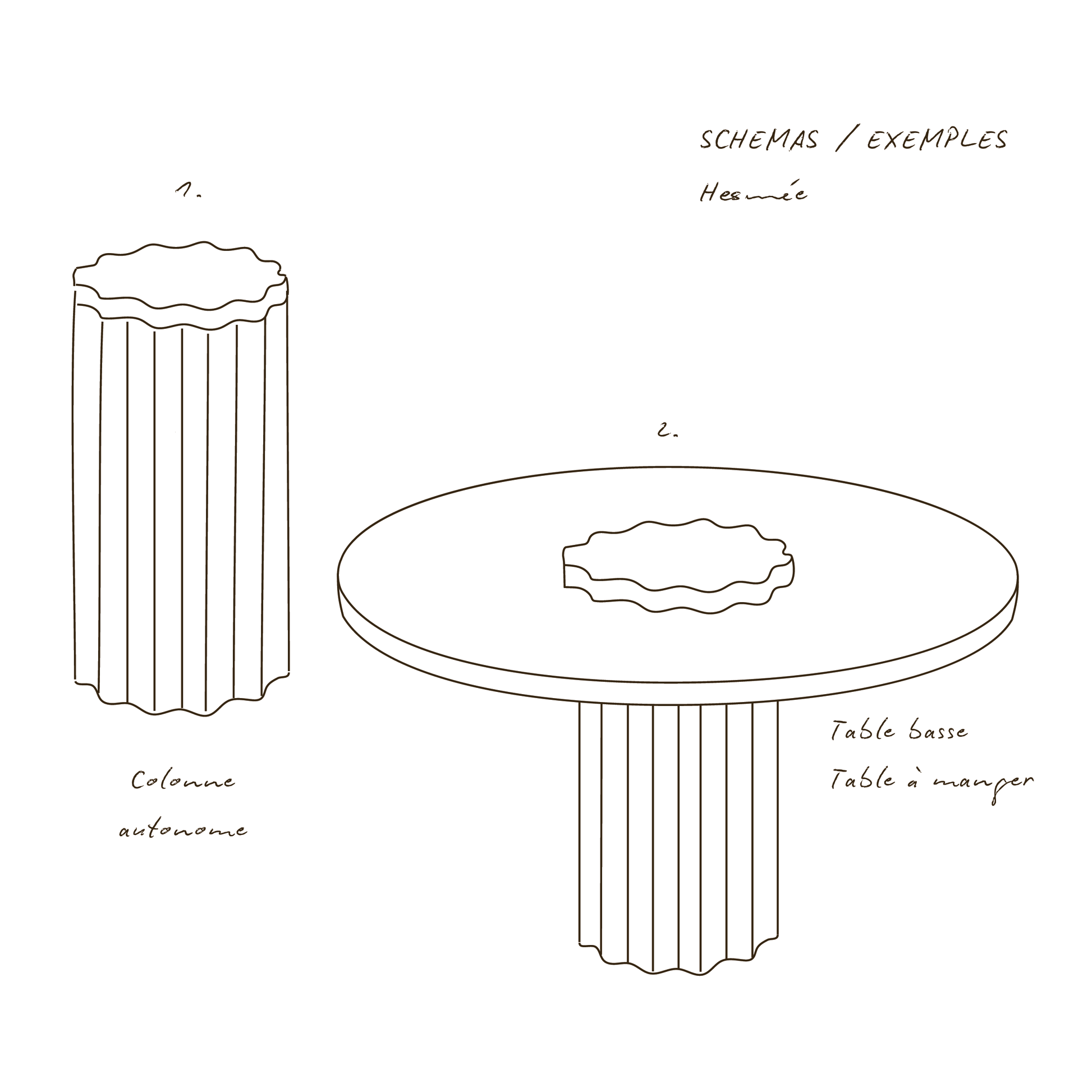 La base, pièce maîtresse du MMH, peut accueillir le plateau ou se transformer en colonne autonome grâce au chapeau, offrant ainsi une grande liberté d’agencement.