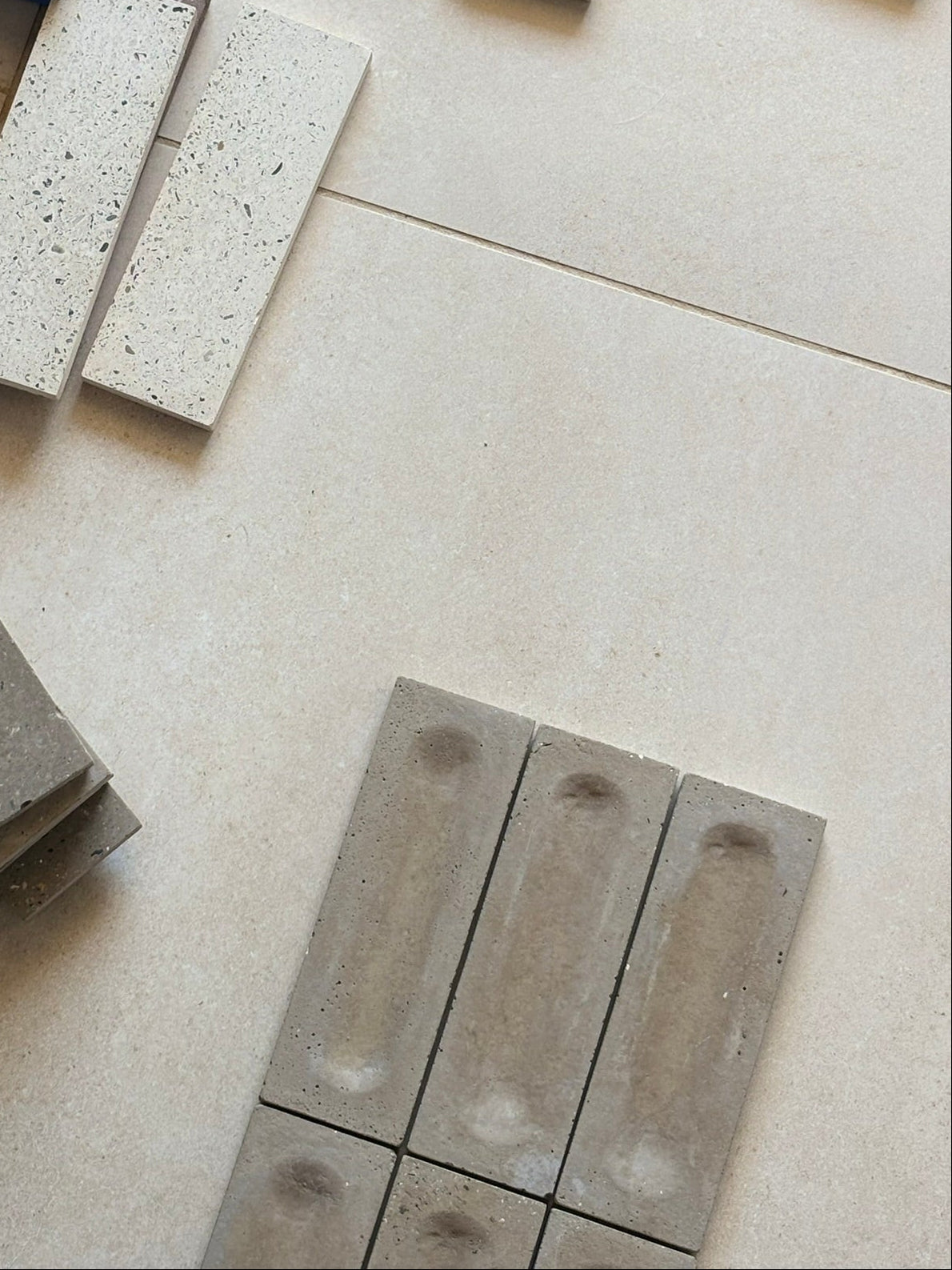 Le carrelage en béton Les cœurs bruts , fruit d'une collaboration unique entre Maison Mokka et Hesmée. Fabriqués artisanalement dans notre atelier marseillais, ces carreaux incarnent l'alliance entre authenticité minérale et design contemporain.
